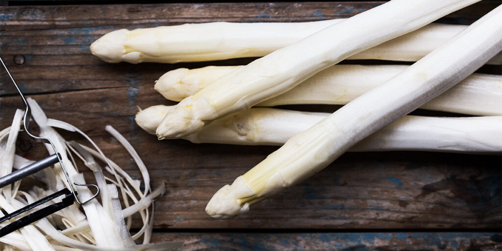 En de smaak van de asperges? Die moet je zelf ervaren. Kook de asperges ruim van tevoren even voor.