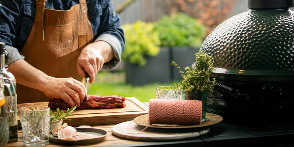 Steek de houtskool in de Big Green Egg aan en verwarm, met de Cast Iron Grid, tot een temperatuur van 220 °C.
